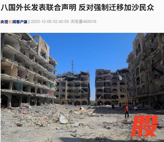 据央视新闻12月6日消息,当地时间12月5日,约旦、阿联酋、印度尼西亚、巴基斯坦、土耳其、沙特、卡塔尔和埃及八国外长发表联合声明,对以方有关“将拉法口岸单向对外开放、把加沙地带居民送往埃及”的表态表示关切。