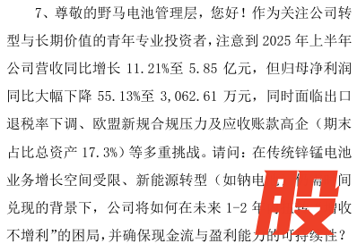 这也正是投资者担忧的核心问题。在近期的投资者关系活动中,有投资者直接提问:“面临出口退税率下调、欧盟新规合规压力及应收账款高企(期末占比总资产17.3%)等多重挑战。请问:在传统锌锰电池业务增长空间受限、新能源转型(如钠电池)仍需时间兑现的背景下,公司将如何在未来1-2年内扭转“增收不增利”的困局,并确保现金流与盈利能力的可持续性?”