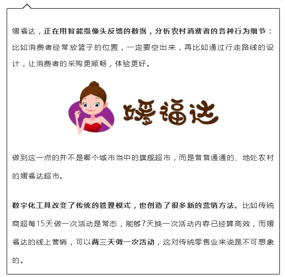 取得快速发展的媛福达超市在产品创新、渠道立体化、数字化营销等领域积极进取,为中国农村的消费升级探索出一条新路。